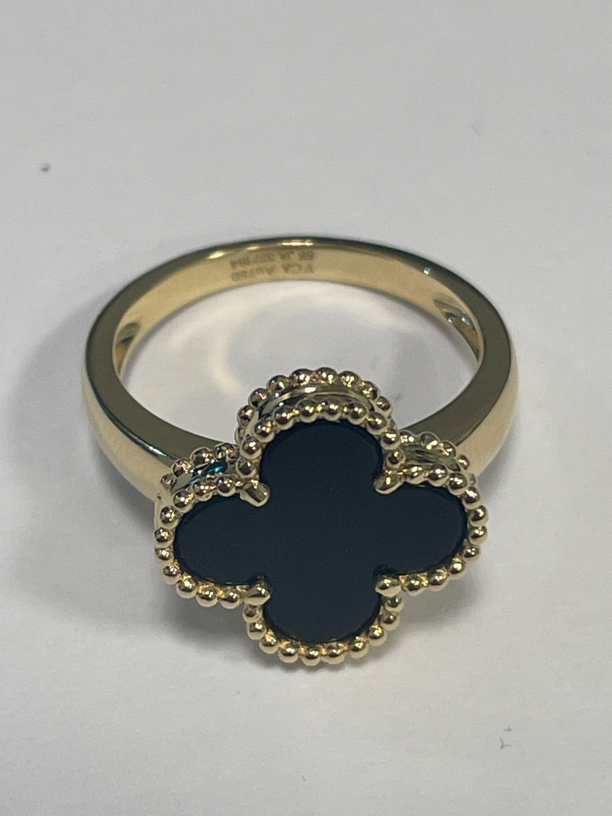 18K Yellow Gold Clover 1/2.25 Ring with Onyx