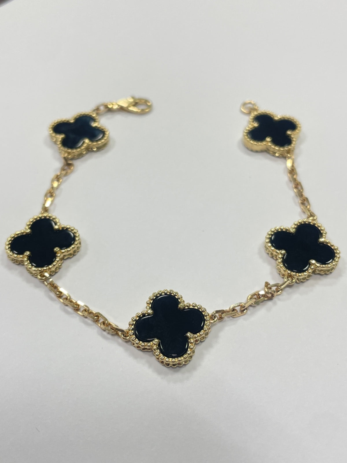 18K Yellow Gold Clover Bracelet with Onyx