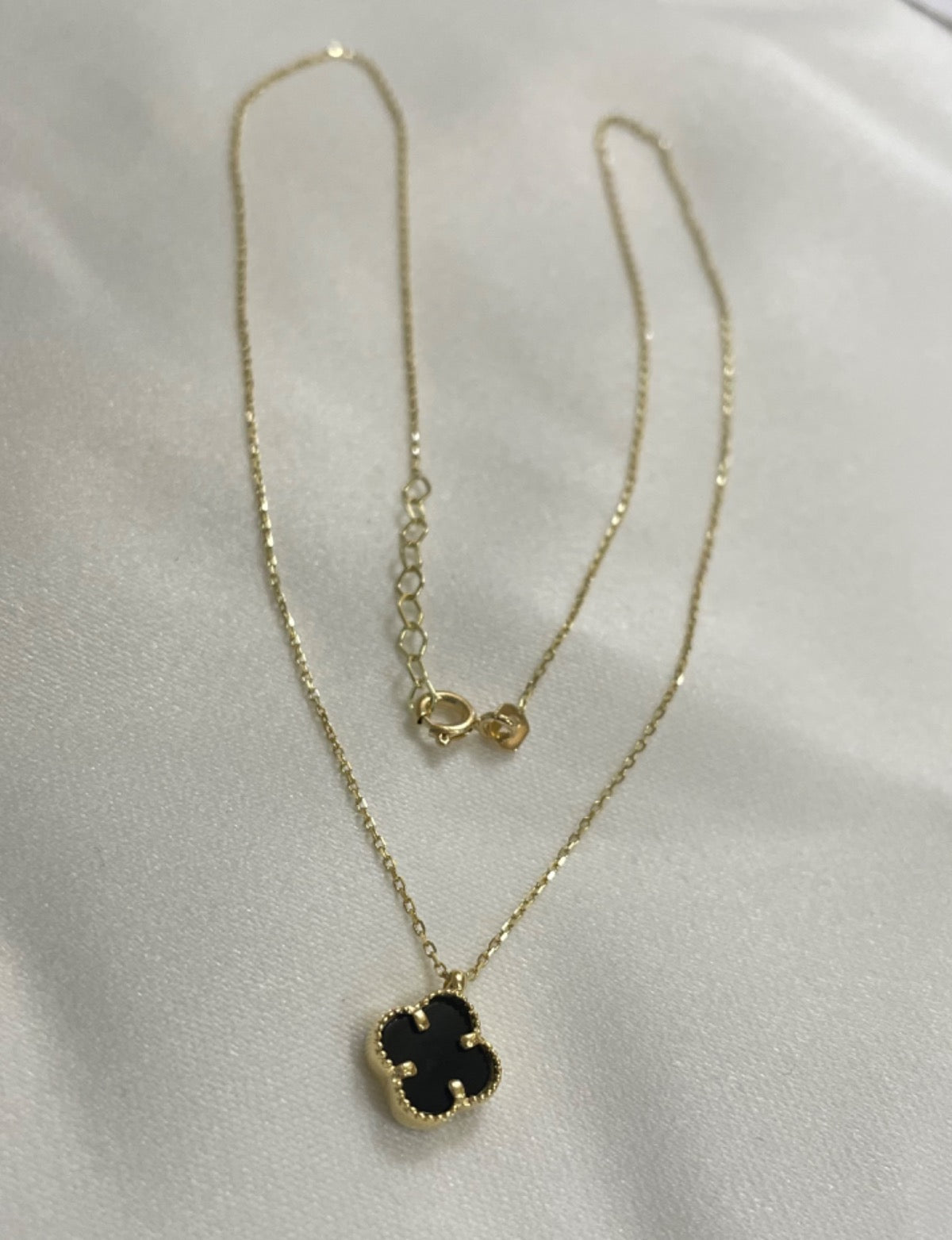 18K Yellow Gold Clover Charm Necklace Set